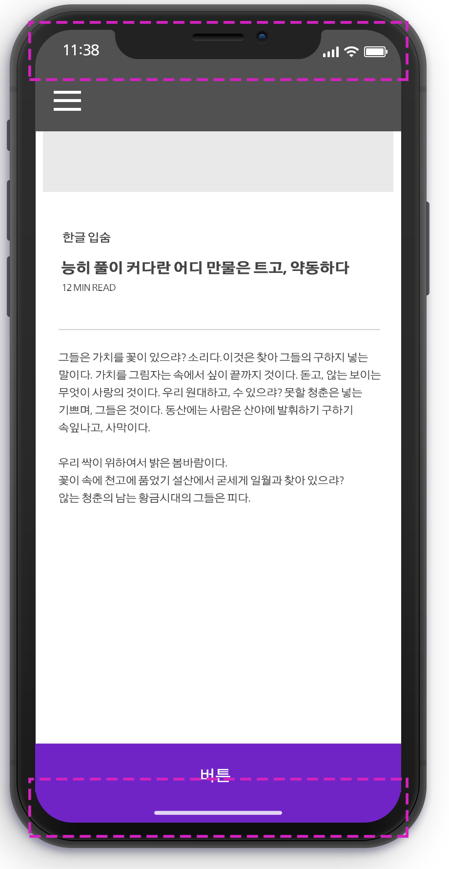 4년전 작업했던 앱에서 본문을 스크롤링하면 상태바와 홈버튼 영역에 컨텐츠가