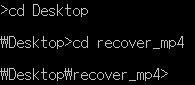 당연한 이야기이지만 recover_mp4.exe가 있는 폴더까지 command 위치를 옮겨야 함.
