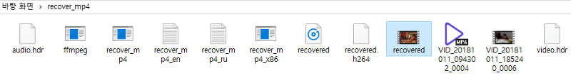 결과물 : CMD창에 아래와 같은 메세지가 뜨면서 recovered.mp4가 생성 됨