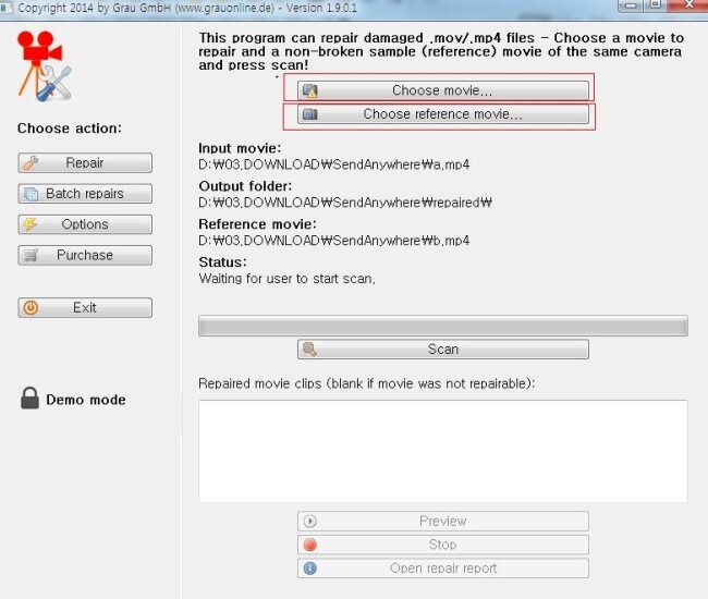 Choose reference movie 에는 깨지지 않은 정상적인 파일을 선택한다.