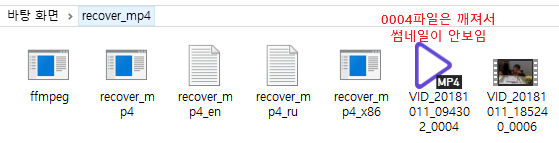 1. 손상된 파일 (아래 준비완료 캡쳐에서 ~~_0004.mp4)