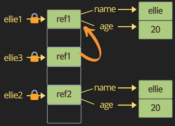 object는 메모리에 탑제 될 때, 주소가 저장되므로 같은 data를 할당 해도 비교시 false가 된다.