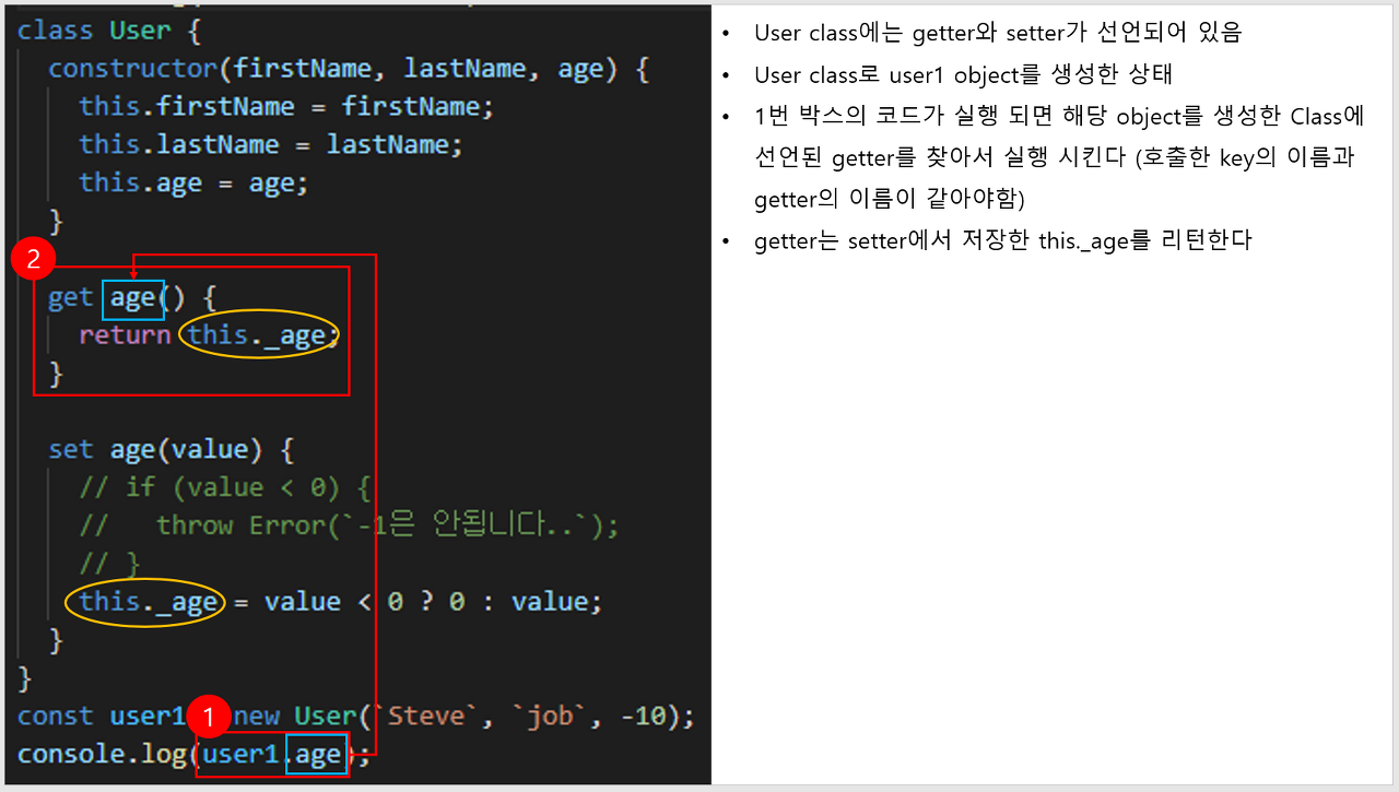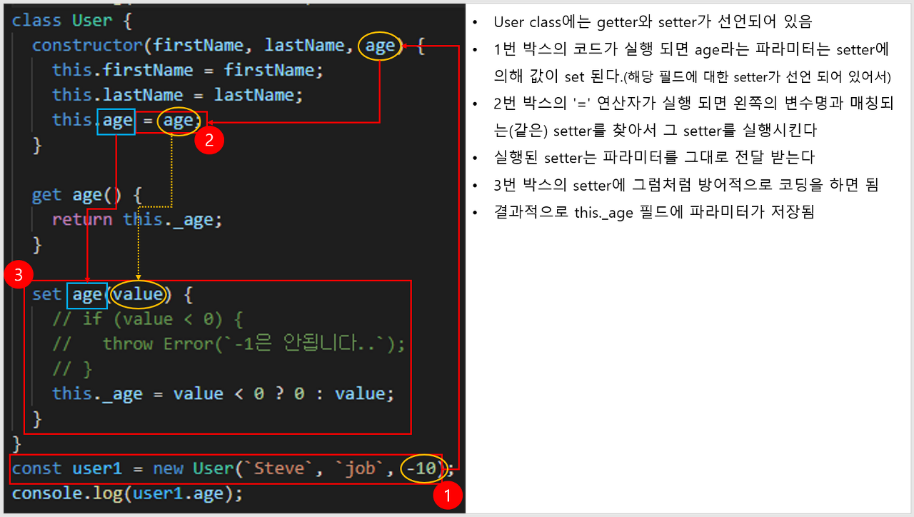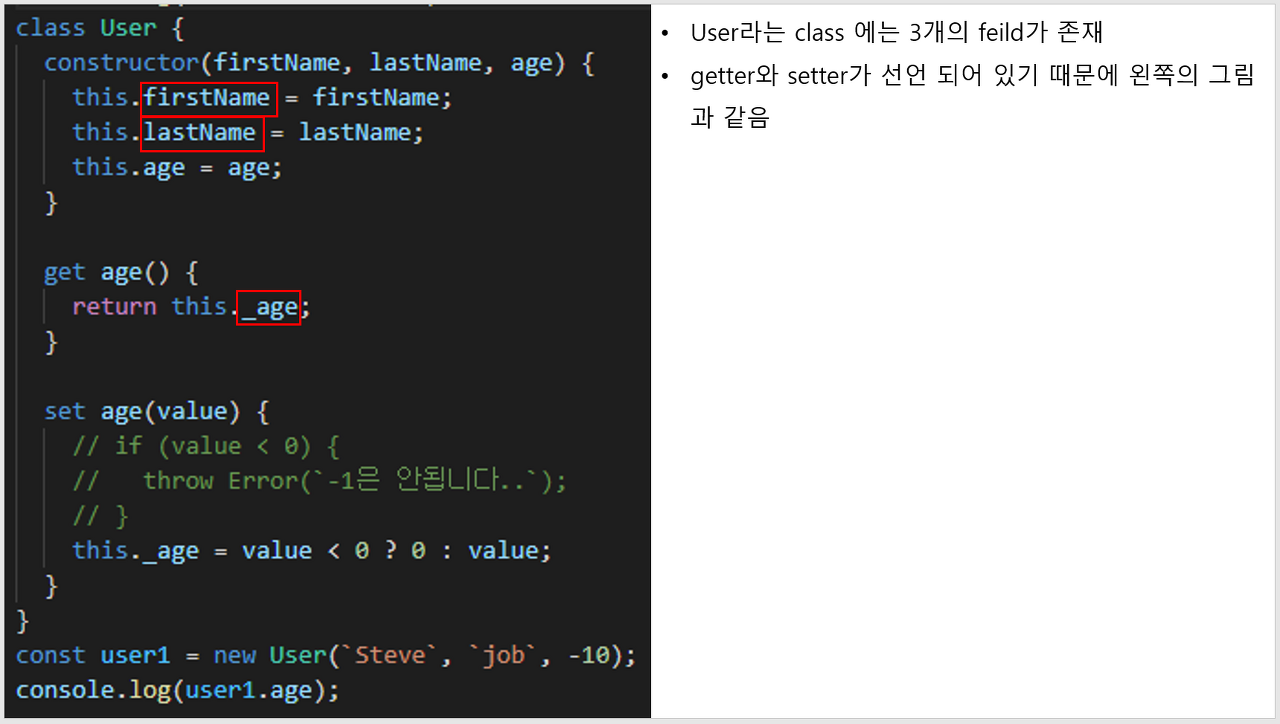 this._age = value < 0 ? 0 : value; // 생성자 필드명 앞에 _ 를 붙이는게 관습